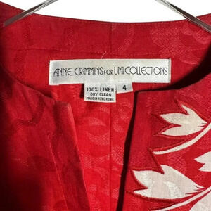 Anne Crimmins For Umi Collections Women's red embroidered linen jacket size 4