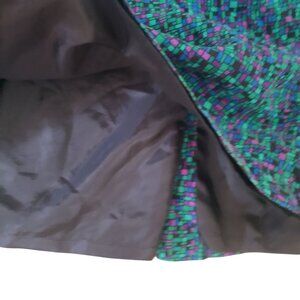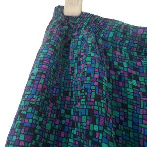This vintage Anne Crimmins skirt from the 1980s is crafted from luxurious 100% silk. Its bold multicolor mosaic pattern exudes timeless charm, while the elastic waistband ensures comfort and versatility. A true representation of vintage elegance, perfect for collectors or those seeking a unique, sophisticated addition to their wardrobe.