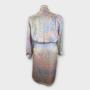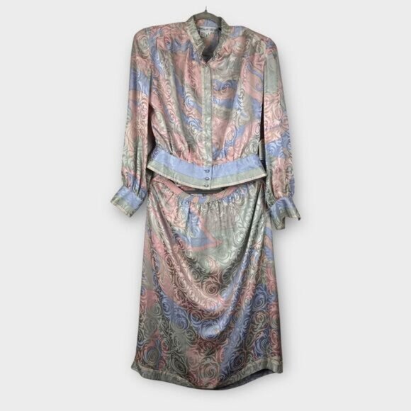 80s Silk Set, 80s Pastel Set, Blouse and Skirt, Damask Print, Golden Girls, Tea Party, Mother of the Bride, 80s party, retro chic, 2 piece set, mix and match, easter outfit, vintage easter set, costume, prop,