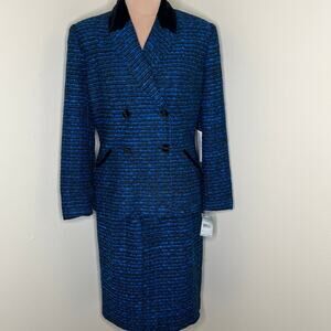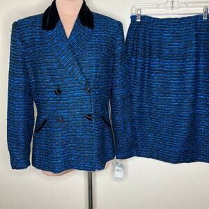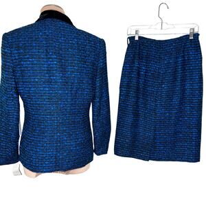 Anne Crimmins for Umi Collections Skirt Suit 10 Blue Silk Tweed Jacket Skirt New