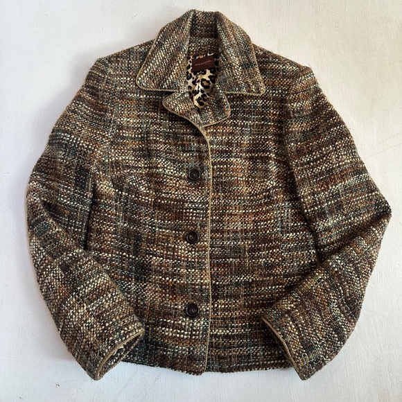 Anne Dee Goldin Green Gold Wool Tweed Blazer Jacket
