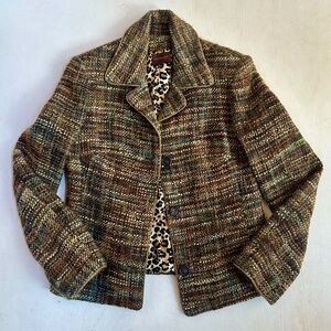 Anne Dee Goldin Green Gold Tweed Blazer Jacket