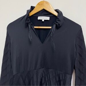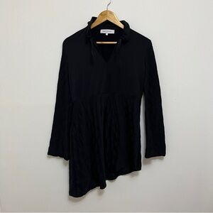 Anne Fontaine Black Long Sleeve Edmee Textured Asymmetrical Tunic Blouse Size 10