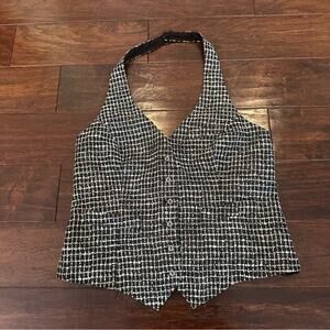 Anne Fontaine CLEA Tweed Halter Vest Waistcoat Designer Size 44 Halter Top US 12