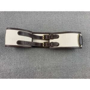 Anne Fontaine Canvas Corset Waist Belt Women One Size White Brown Double Buckle