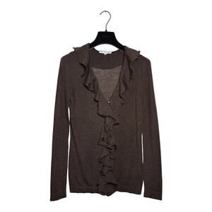 Anne Fontaine Chocolate Brown Cashmere Silk Ruffle Cardigan VTG Y2K 38 EU