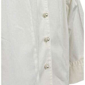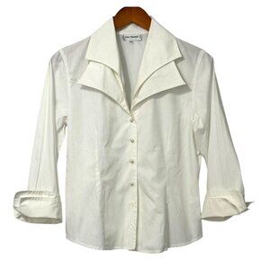Anne Fontaine Crisp White Shirt Double Collar & Cuff Pearl Buttons Size 42 / 10