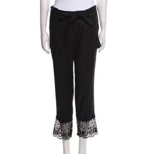 Anne Fontaine Embroidered Accent Elegant Black Lace Trim pants set size medium