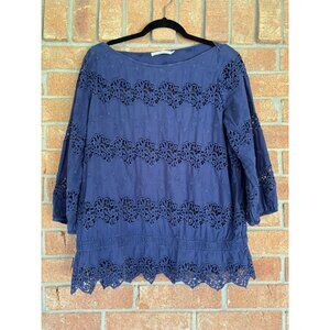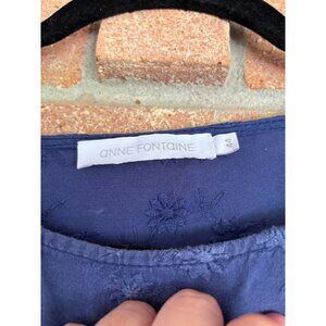 Anne Fontaine Evita Navy Blue Cotton Lace 3/4 Sleeve Blouse Embroidered Design
