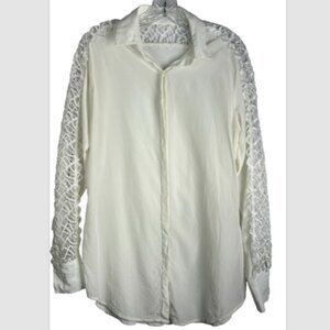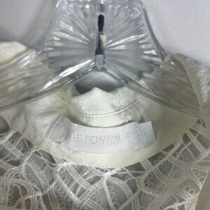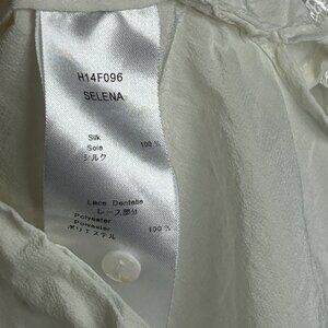 Anne Fontaine LADIES silk BLOUSE 42 10 WHITE CREAM EYELET CROCHET lace BUTTON UP