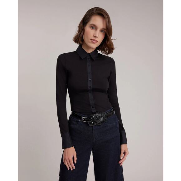 Anne Fontaine Nuage Button up Shirt Black Sz 0-2 Quiet Luxary Parisian