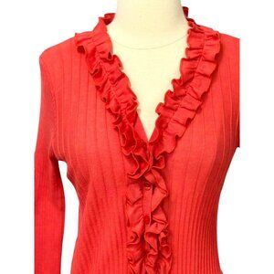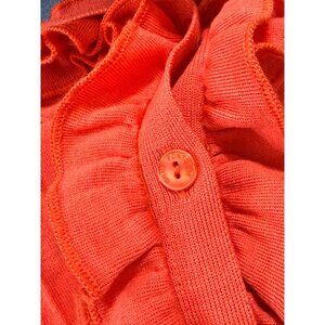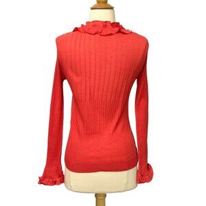 Anne Fontaine Parfaite Cardigan Sweater Ruffles Coral Cotton Knit Size 40/6-8 US