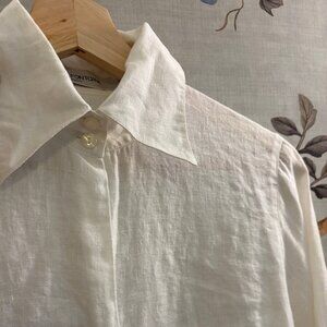 Anne Fontaine White Linen Button Up Shirt Tunic, FR 40