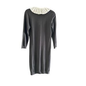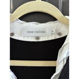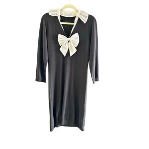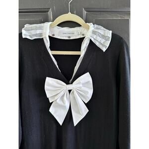 Anne Fontaine Women's Black White Wool Bow Front V-Neck Dress Size 42