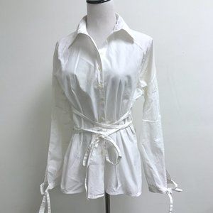 Anne Fontaine white button up wrap tie long sleeve shirt top made in France 4