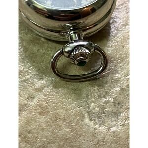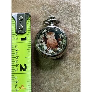 Great preowned condition. Has a new battery and works fine. The watch comes with a leather(?) necklace but it’s got a lot of wear on it.