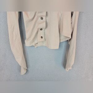 Anne Isabella Beige Asymmetrical Womens Shirt Sz S Button Front Long Sleeve
