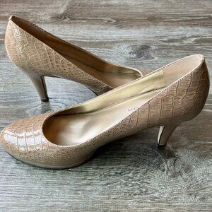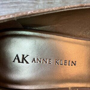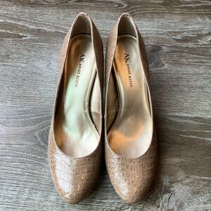 Anne Klein Wystere animal print platform dress pumps Tan faux patent sz 8