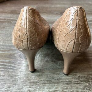 Anne Kelin Wystere crocodile platform dress pumps nude patent leather size 8