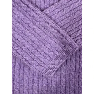 Anne Klein 100% Cashmere Lavender Purple Cable Knit Crew Neck Sweater Size Med