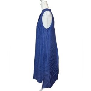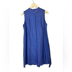 Anne Klein 100% Linen Chambray Sleeveless Mandarin Collar swing Dress Size Small