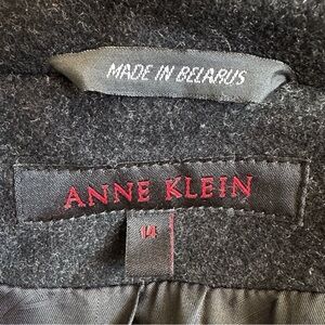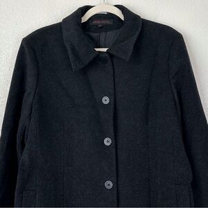 Anne Klein 100% Wool Black Single Breasted Women's Coat, Size 14