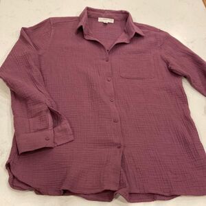 ❤️ Anne Klein 100% cotton gauze Muslim purple button front long sleeve blouse