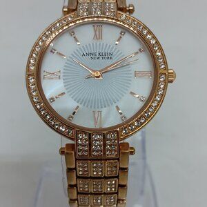 Anne Klein 12/2286 Women's 34mm Rose Gold Tone Crystal Accent MOP Dial Watch