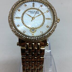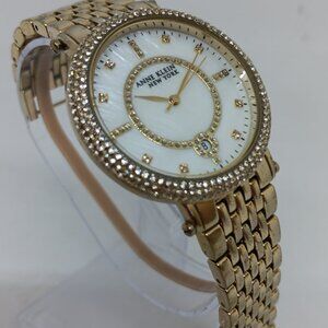 Anne Klein 12/2312 Women's 36mm Gold Tone MOP Dial Crystal Accent Quartz Watch