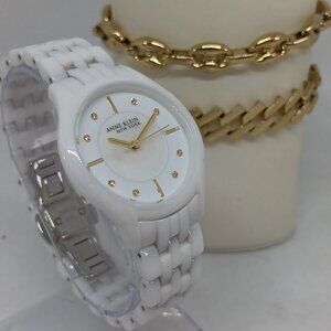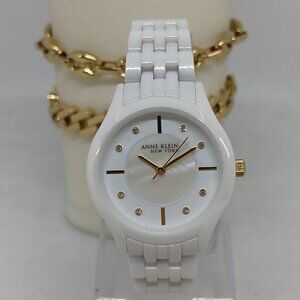 Anne Klein 12/7740WTST Women's 32mm Quartz Ceramic Watch + Bracelet Set PLS READ