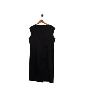 Anne Klein 14 Black Asymmetrical Button Front Stretch Cotton Blend Shift Dress