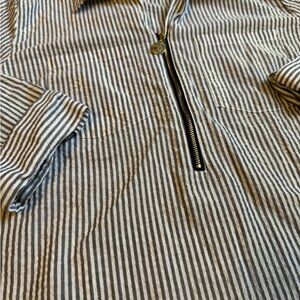 Anne Klein 1/4 Zip Stripped Blouse Medium