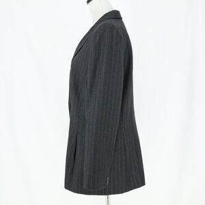 Anne Klein 2 Jacket Womens 12 Dark Gray Wool Pinstripe Double Breasted Lined