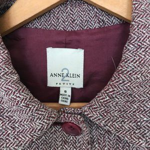 Anne Klein 2 Maroon/Gray Herringbone Blazer
