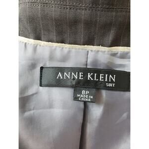 Anne Klein 2 Piece Suit Womens Petite 8 Black Wool Striped Lined Back Lace Up