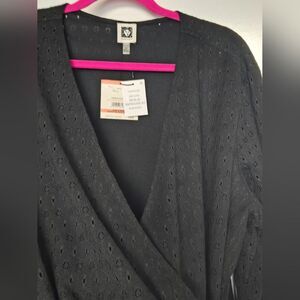Anne Klein 3/4" Sleeve V-Neck Faux Wrap Top Blouse Eyelet Cutout Pattern
