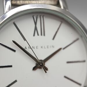 Anne Klein 36mm Watch Silver Tone Bracelet White Round Dial w New Battery