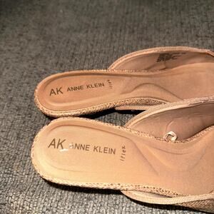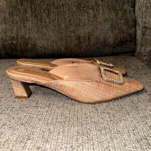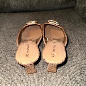 Anne Klein AK Laverne Pumps Womens 9.5M Beige Woven Embellished Slingback Mules.