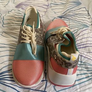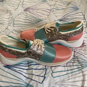 Anne Klein AK Sport The Daddy Leopard Lace Up Sneakers Size 9.5 Like New W/O Box