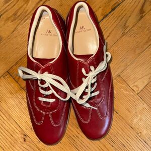 Anne Klein AK2 Women Red Leather Lace Up Loafer Sneaker Driving Shoes SZ 7