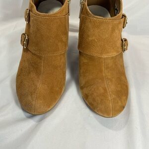 Anne Klein “AKTAYLOR” caramel wedge heeled booties.