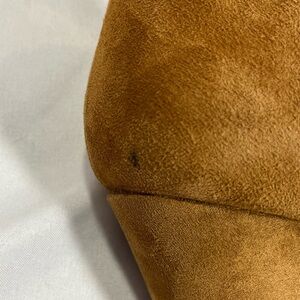 Left bootie has two small marks, one on the heel and one on the to - see last two picks.