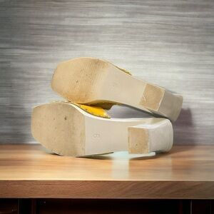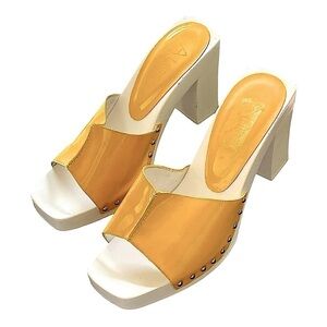 Anne Klein ALINE Cricket Yellow Patent Leather 4”Heeled Mules Made in Brazil 9