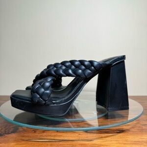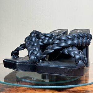 Anne Klein AK Aiden Chunky Platform Black Faux Leather Block Heel Sandal Size 5.5