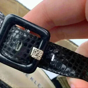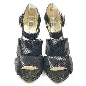 Anne Klein Akouray heels sz 8.5 black leather snakeskin print Dorsay platforms