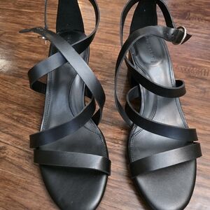 Anne Klein Akrowen Black Strappy Block Heel Sandals 8.5M