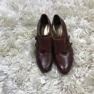 These classy ankle booties are made by Anne Klein. 100% authentic. These shoes are stylish and comfortable. Akwinka. Cognac brown. Leather upper. Balance man made. Size 8 1/2 M. The Heel is approx: 3.25" Shaft: approx 6". The retail price is $144 plus tax.