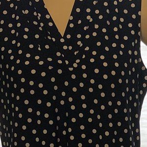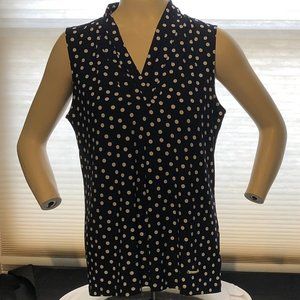 Anne Klein BLACK WITH White Polka Dot Sleeveless V neck Pullover Top NEW NWT - Size m