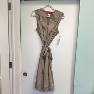 Anne Klein Beige Checkered Midi Dress
