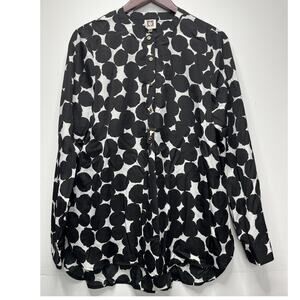Anne Klein Black And White Polka Dot Long Sleeve Tunic Blouse / Size-12